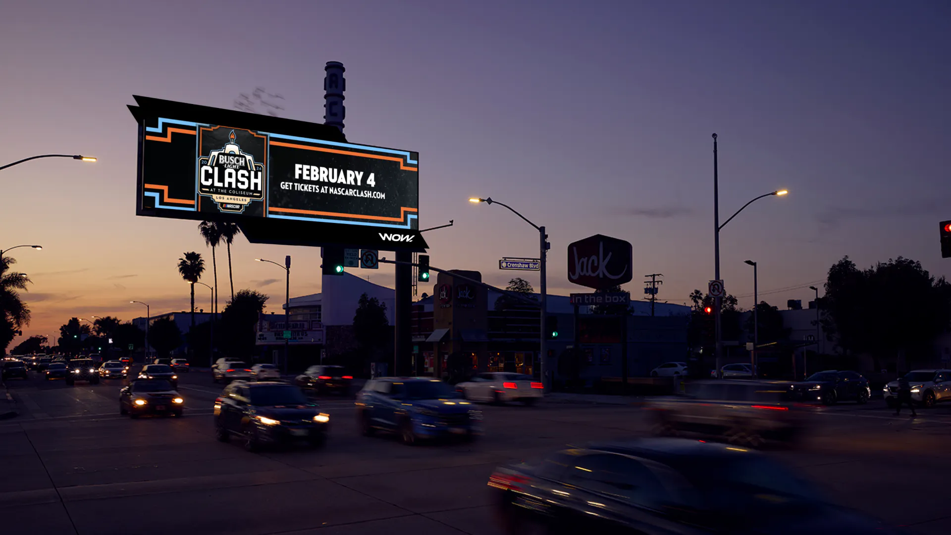 A synchronized network of full-motion, three-screen pods delivering High-Frequency street-Level media. Available only as 50% or 100% network buys.